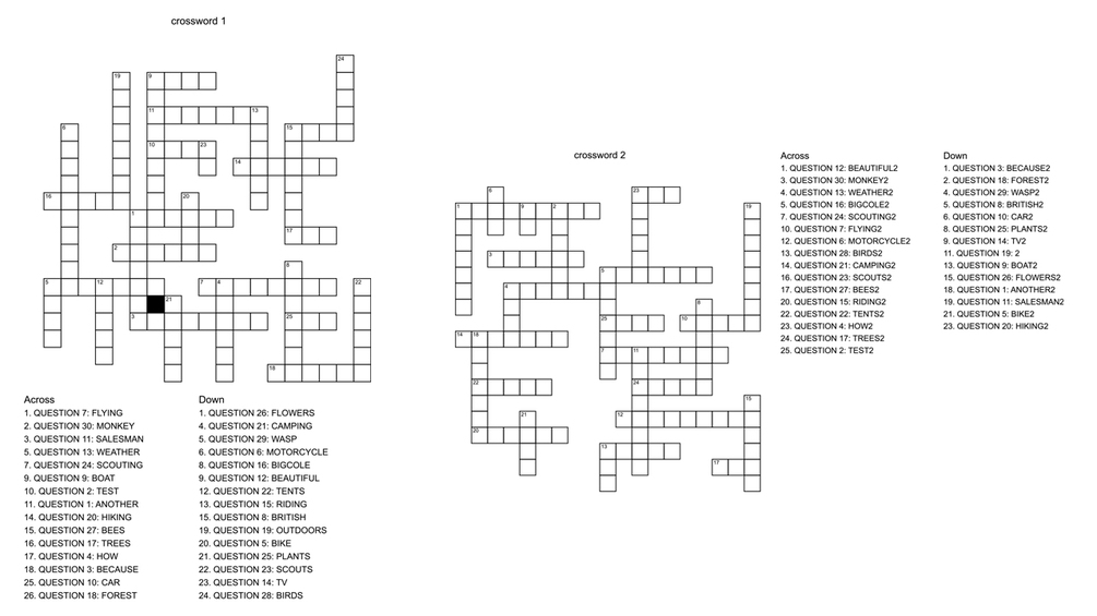 Create limitless crosswords of any size 10x10+ with custom number of questions in each crossword